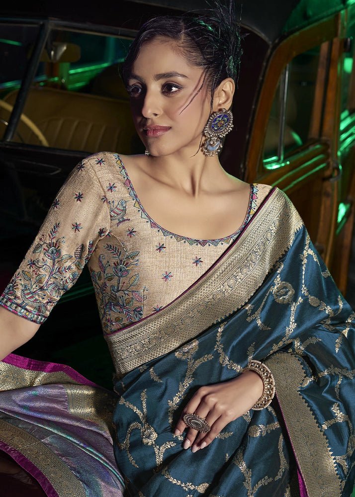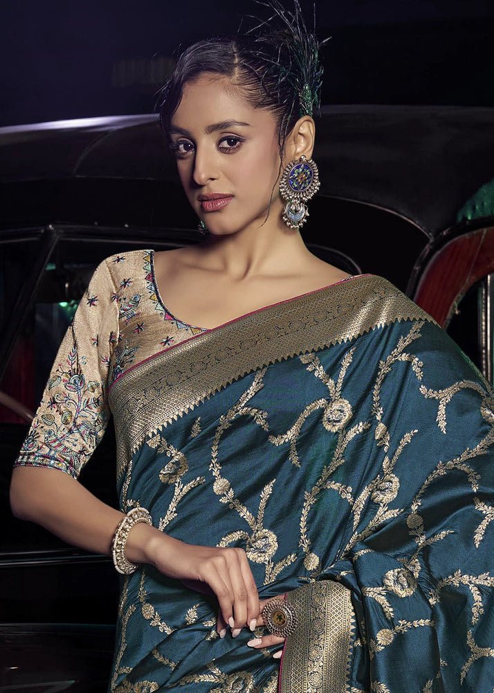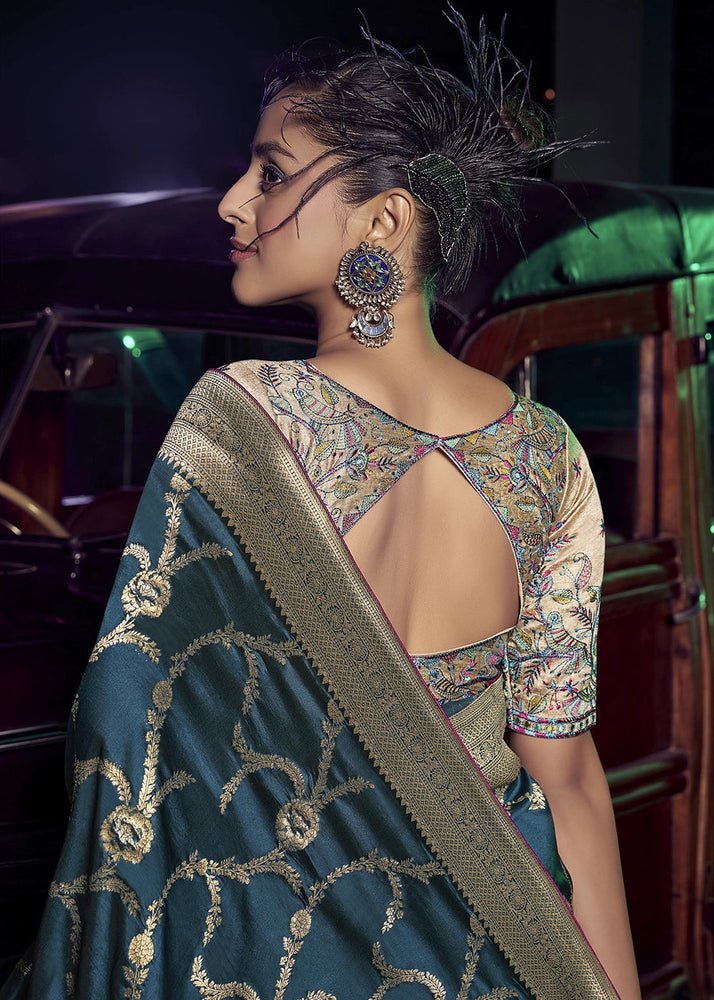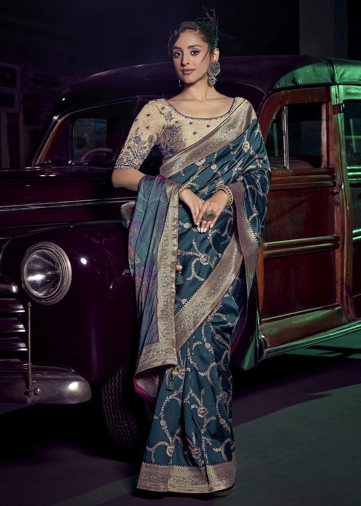Shine in Banarasi-inspired weaves that bring timeless ethnic glam to every festive reel.